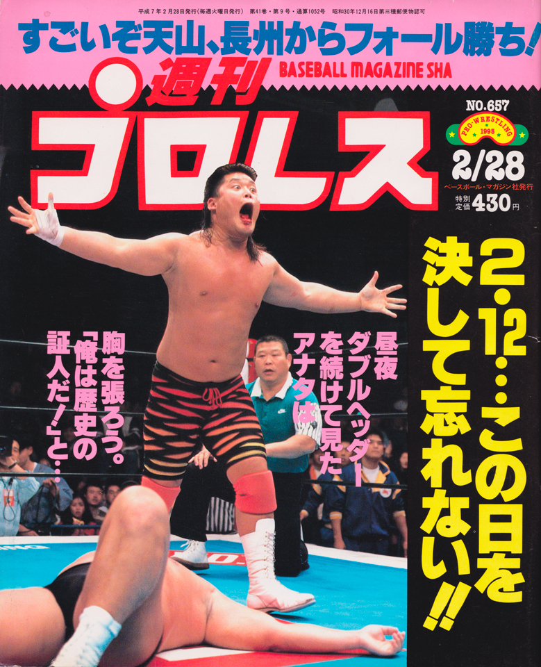 当時の週プロを、ヤフオクを利用して無作為に選んで入手した。No.657、1995年2月28日号。表紙は、当時新日本プロレスのホープだった、天山広吉選手である。うん、懐かしい。あの頃、確かにこの号を読んだ記憶がある。