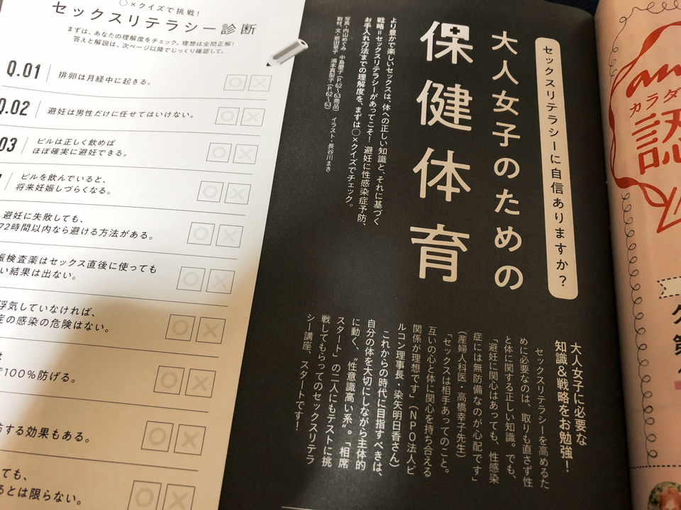 置いてきぼりになるのは、こうした性の知識に疎い男性であり、10代の若者である。高めなければならないのは、雑誌の発行部数競争ではなく、できうるなら、性の知識である。雑誌編集部の取り組みとしては、ターゲット層に向けてこうした企画が挙げられやすく、ビジュアルの話題性もあって好奇心旺盛な女性が飛びつくのだろうが、性の知識という観点で考えると、男性も女性も、それもできれば10代の若者に向けた性教育が、こうした商業雑誌でできないものかと、新たな企画に期待する面がある。