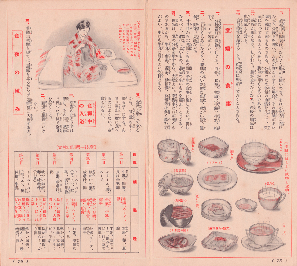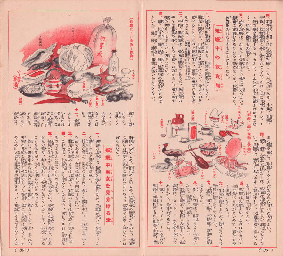 やや横道に逸れたことで恐縮だけれど、この小冊子一冊があれば、映像作家ならば、当時の暮らしの中で妊婦の生活から出産までを、ディテールある短篇映画に仕立て上げることが可能なはずだ。それだけの情報が詰まっているのである。