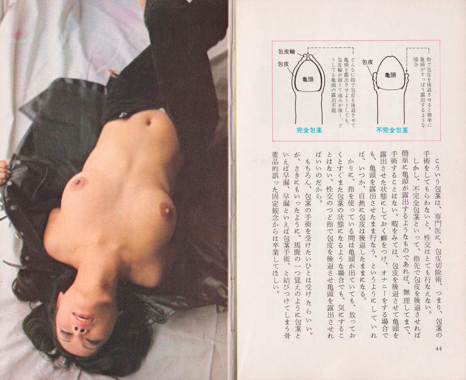 この章のサブタイトルにある、“包茎は男の恥か?”というのがキーワード。前文に、ある青年の悩み事が記されていて、それに答える形の文章となっている。――悩みは早漏(そうろう)。はじめてセックスを体験したけれど、あっという間に終わってしまった。彼女にあんた早漏なのね、と言われた。「包茎」が原因ではないかと考えた。自分のペニスが「包茎」なのかどうか自信がない。亀頭が出ていなくて皮が被っている。「包茎」手術を受けて、早漏でなくなれば、彼女にあんなことを言われなくて済むのではないか――という悩み相談。