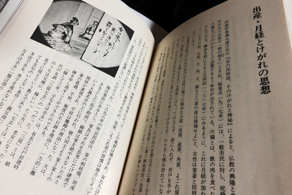 古代、仏教の興隆にともない、病気と出産は「物の祟り」とされたという。出産の「けがれ」を産穢といい、月経もそれに含まれ、とどのつまり、女性の産は牛・馬・犬・鹿など家畜の産と同等におかれていたのである。