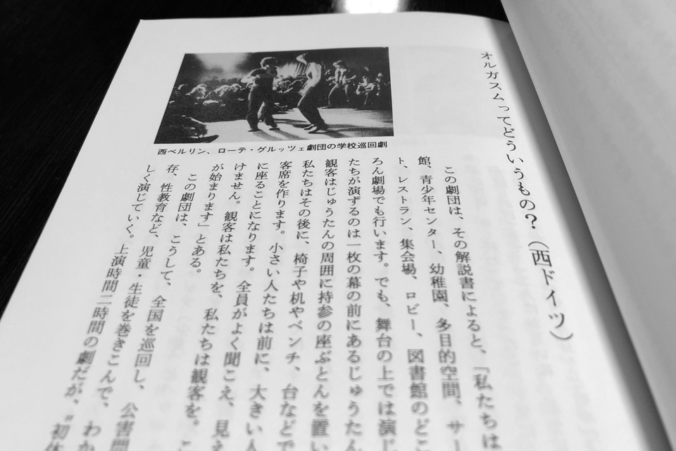 この西ベルリンの劇団ローテ・グルッツェが、『愛って、どういう意味?』という劇を、“学校巡回劇”として公演していたようである。劇の中身では、“初体験”の男女における「オルガスム」について繰り広げられた部分がある。この内容がたいへんユニークで、また熟読玩味すべきものであると思われるので、少し長めになるが、以下、転載させていただく。