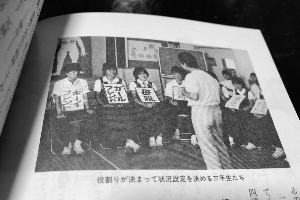役が決まった人の胸には、“母親”とか“警官”とか“婦人科医”などと記したネームプレートをぶらさげ、劇の進行上、誰がどんな役なのか認識し易くしておく。ロールプレイングをスムーズに進めるためには、そのシチュエーションが生徒たちの身近な問題となるように促さなければならないという。