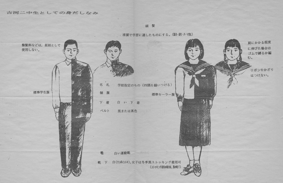 ちなみに、私が30年以上前に卒業した、茨城県古河市の母校の市立中学校(古河二中)の制服と身だしなみに関する校則はどんな事柄だったか――(画像参照)。