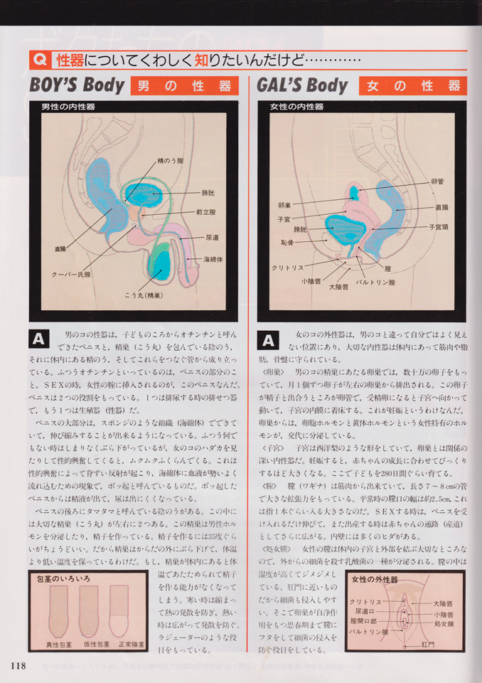 「ボクたちのSEXサイエンス 思春期のこころとからだ」の記事の内容は、タイトルにもあるように、思春期の心とからだの変化がテーマであり、前述のCGイラストで内容を視覚的に補完していたわけで、これらはQ&A方式で、「異性を好きになるわけは…?」「第2次性徴ってどんなこと?」「性器についてくわしく知りたいんだけど…」の3つの質問に答える形となっていた。