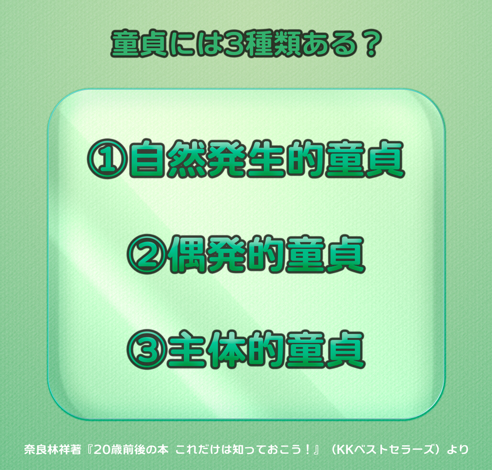 奈良林氏の言説に触れる前に踏まえておきたいのは、童貞(どうてい)の定義である。現代においては、童貞とは、「同意のもとによる他者との性的行為の経験のない男性のこと」――という解釈でかまわないのではないかと思われる。